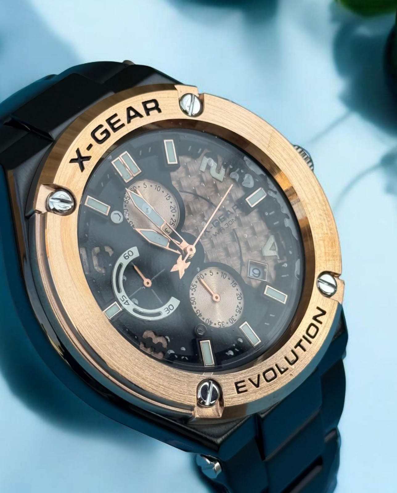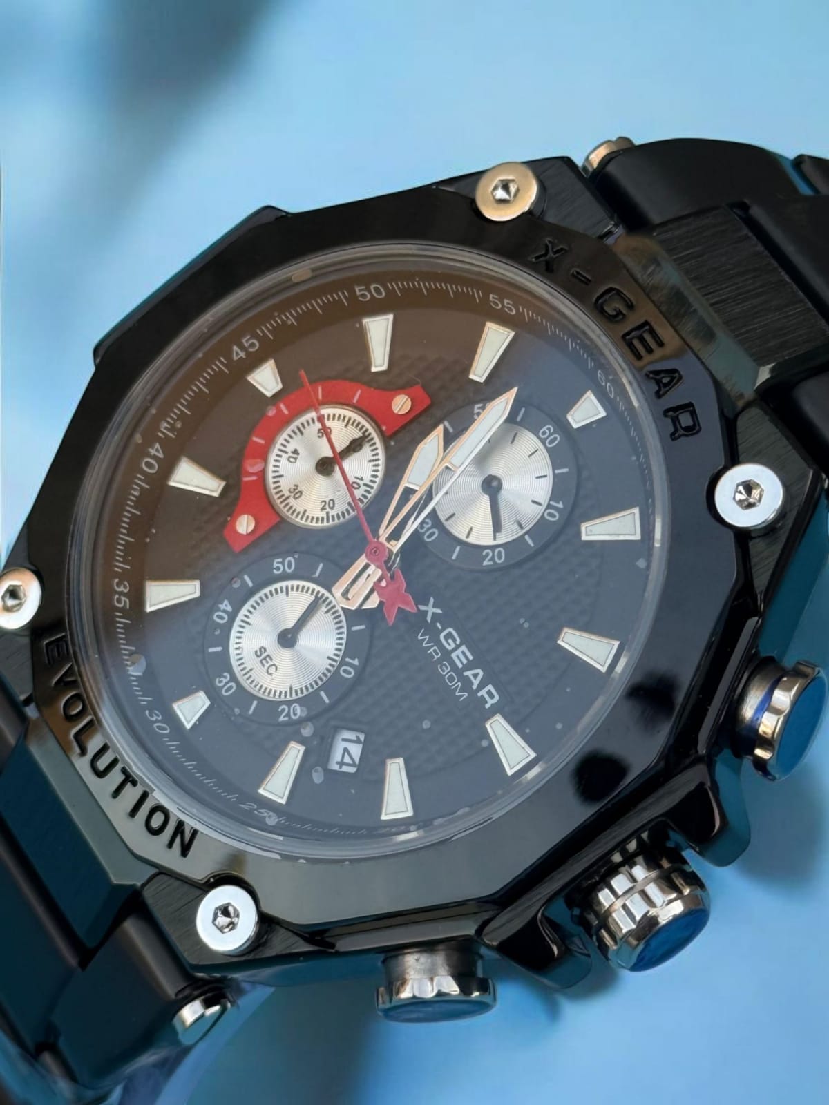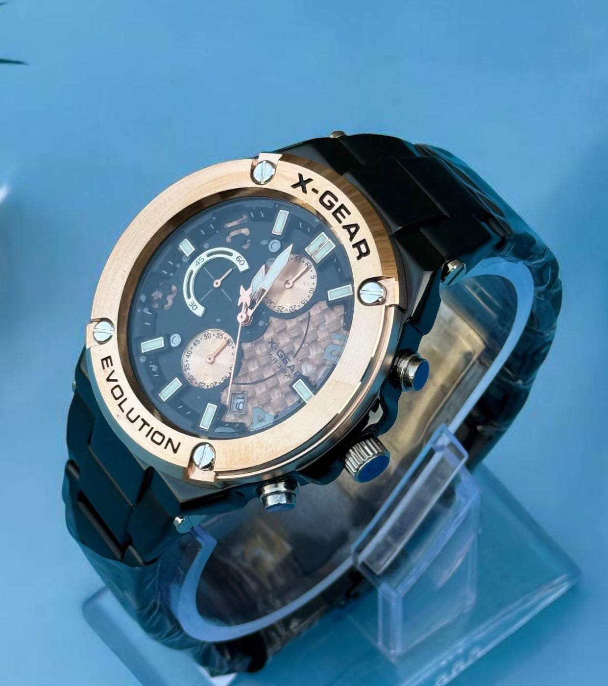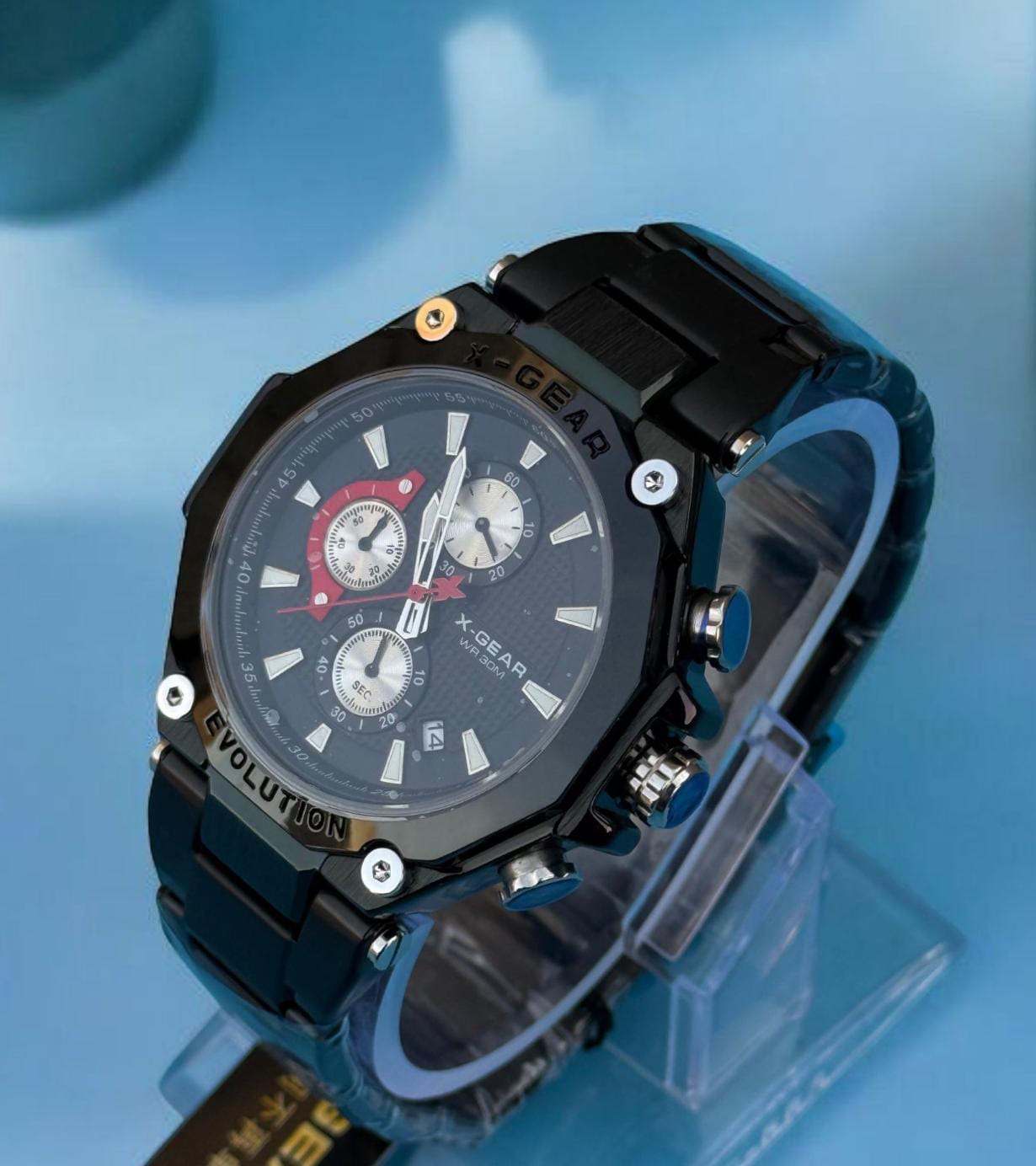 Introducing the X Gear Watch with Working Chronograph, a timepiece that seamlessly blends functionality, elegance, and rugged durability. Designed for those who value precision and style, this watch features a sleek stainless steel construction, a fully functional chronograph, and a sporty yet sophisticated design. Whether you're timing laps on the track, managing your busy schedule, or making a bold fashion statement, the X Gear Watch is your perfect companion.